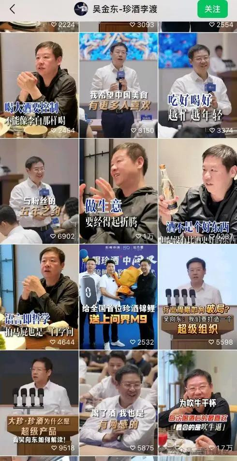 而近日,吴向东更是化身“网红”,在社交媒体频繁发表争议性言论,成为行业关注焦点。截至8月4日,他在视频号平台累计已更新43条内容,从行业分析到人生哲学,多条出格言论引发广泛讨论。例如“为吹牛干杯”的调侃、“酒企搞自动化就是发疯”的偏激观点,以及“酒不是好东西,但没有比酒更好的东西”这类充满矛盾的“金句”,不断刺激着公众的神经。